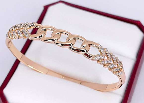 Гипоаллергенная бижутерия. Покрытый золотом 585 пробы ювелирный сплав, вставки выполнены из фианитов. Размер 17,5 см.