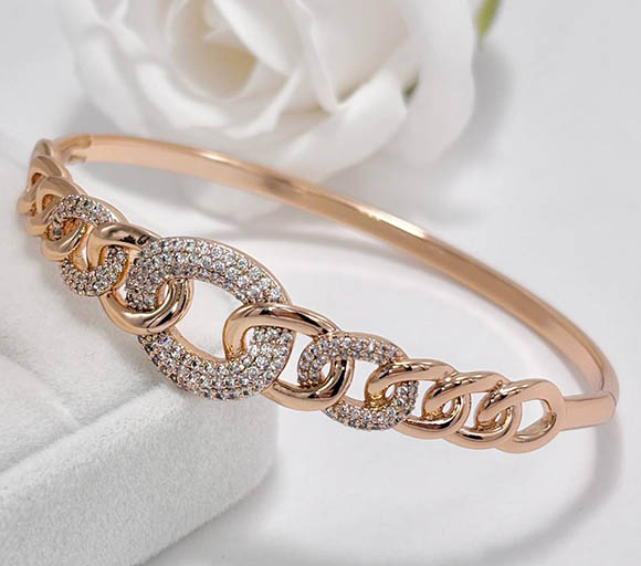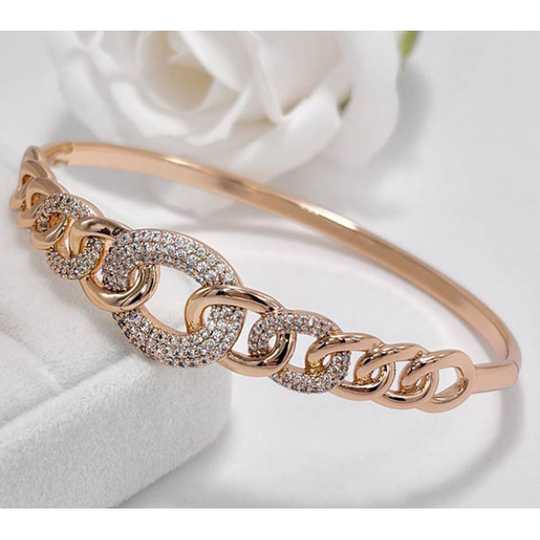 Ювелирный сплав, гипоаллергенное золотое покрытие (из золота 585 пробы), вставки — фианиты. Размер браслета 17 см.