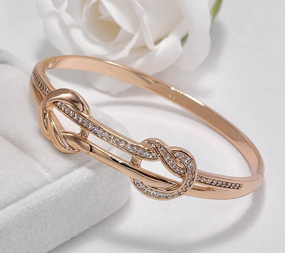Позолоченный гипоаллергенный сплав (покрытие —золото 585 пробы), вставки — фианиты. Размер браслета 17 см.