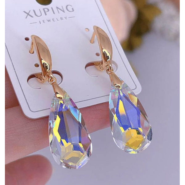 Ювелирный сплав, гипоаллергенное золотое покрытие (из золота 585 пробы), вставки — кристаллы Сваровски. Длина серег 4,5 см, английский замок.