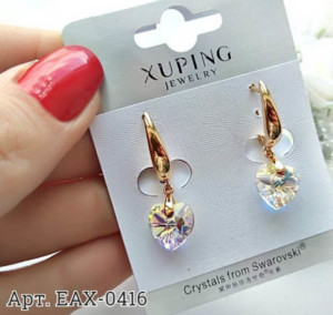 Гипоаллергенная бижутерия. Позолоченный ювелирный сплав, вставки — кристаллы Сваровски. Длина серьги — 3,2 см, размер кристалла — 1 см.