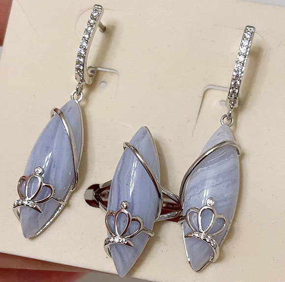 Ювелирный сплав, гипоаллергенное покрытие из родия, вставки — имитация натурального камня и фианиты. У серег английский замок. Размеры кольца: 20. Остался 1 набор.