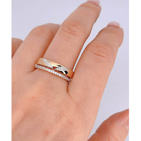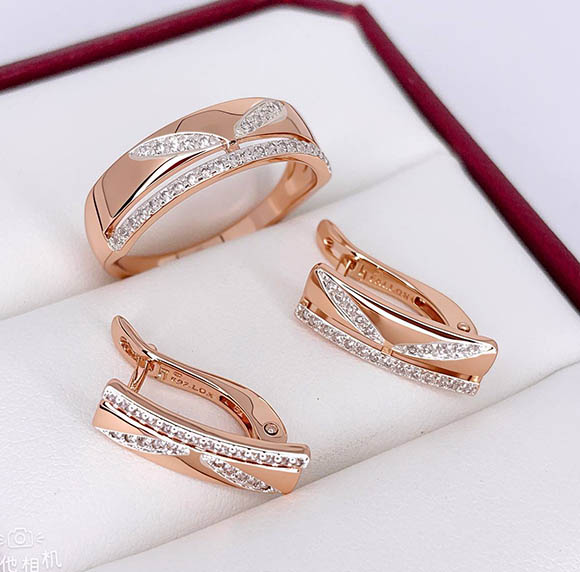 Не вызывающая аллергии бижутерия. Ювелирный сплав, покрытие — золото 585 пробы и родий, вставки — фианиты. Размеры кольца: 19,5. Остался 1 комплект.