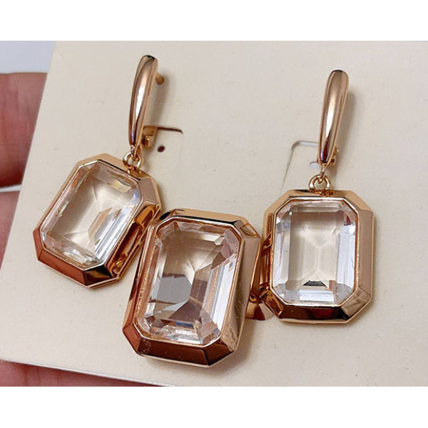 Гипоаллергенная бижутерия. Ювелирный сплав, покрытие выполнено из золота 585 пробы, вставки — фианиты. Высота серег 3,8 см, английский замок. Размеры кольца: 18. Остался 1 набор.