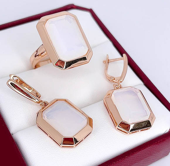 Гипоаллергенный сплав, покрытие из золота 585 пробы, вставки — фианиты. Высота серег 3,8 см, английский замок. Размеры кольца: 20. Остался 1 комплект.