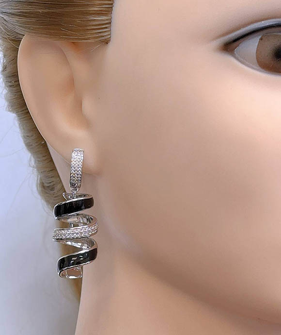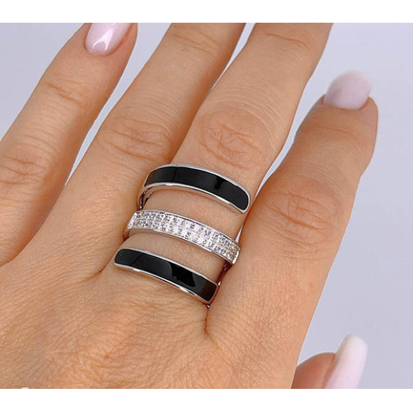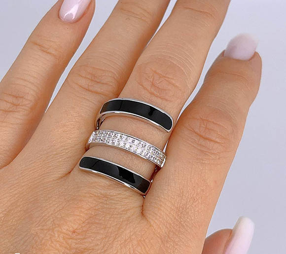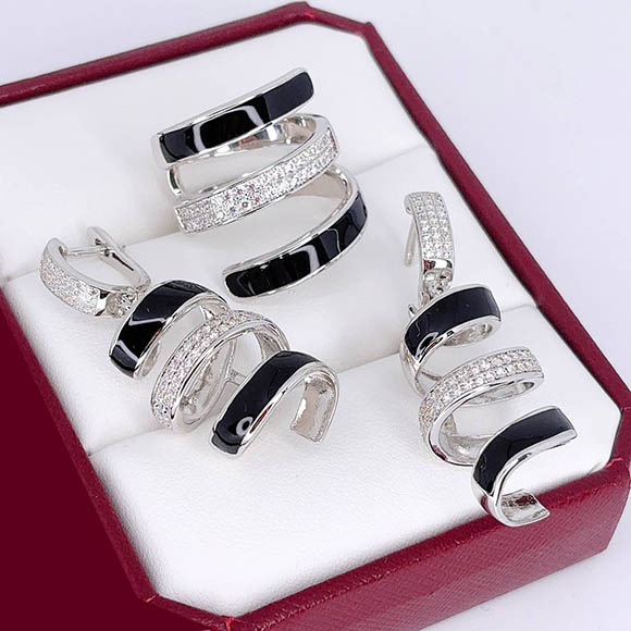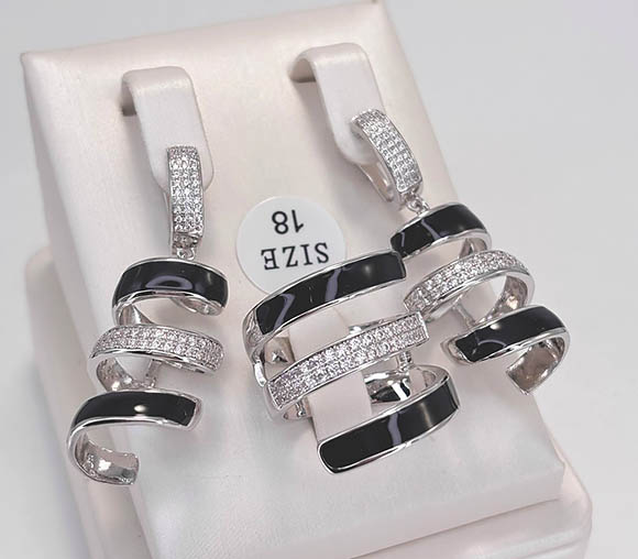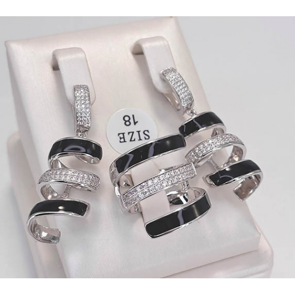 Гипоаллергенный сплав, покрытие из родия, вставки — эмаль и фианиты. У серег английский замок. Размеры кольца: 18. Остался 1 набор.