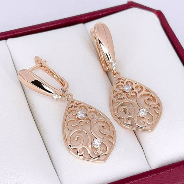Ювелирный сплав, гипоаллергенное золотое покрытие (из золота 585 пробы), вставки — фианиты. Длина 4 см, английский замок.