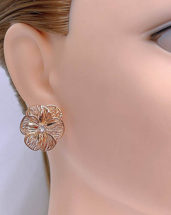 Позолоченный гипоаллергенный сплав (покрытие —золото 585 пробы), вставки — фианиты. Размер 2,5 см, английский замок.
