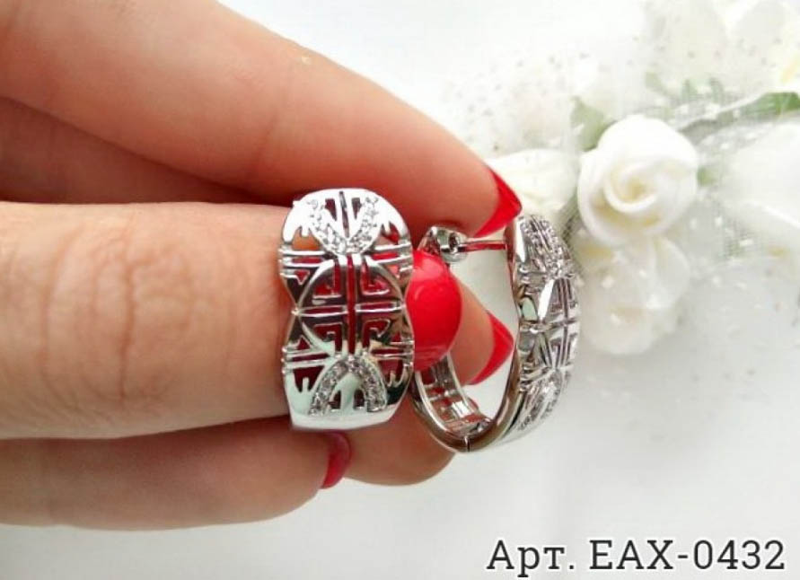 Гипоаллергенная бижутерия. Покрытый родием ювелирный сплав. Длина серьги — 2, 5 см.