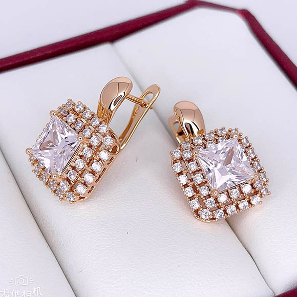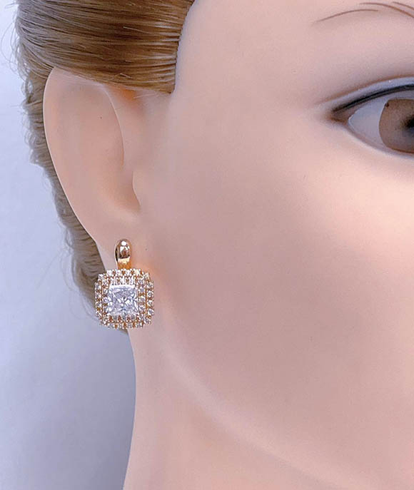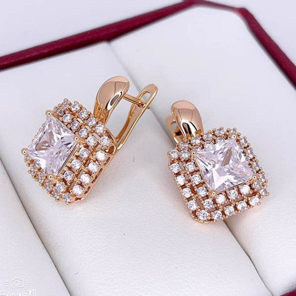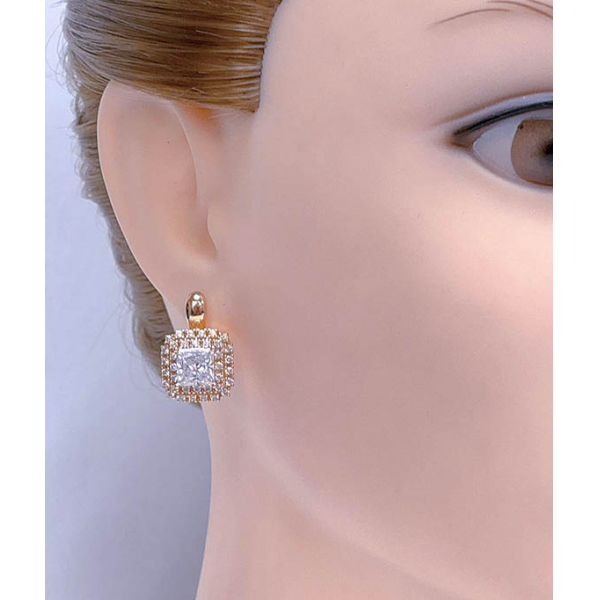 Гипоаллергенная бижутерия. Ювелирный сплав, покрытие выполнено из золота 585 пробы, вставки — фианиты. Длина серег 2,1 см, английский замок.