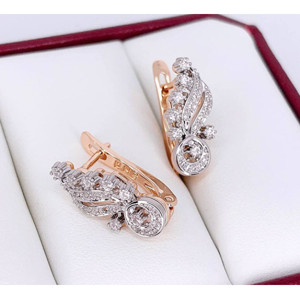 Ювелирный сплав, гипоаллергенное покрытие из золота 585 пробы и родия, фианитовые вставки. Высота 2 см, английский замок.