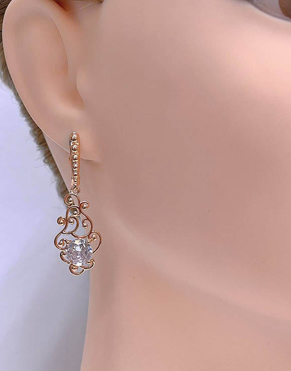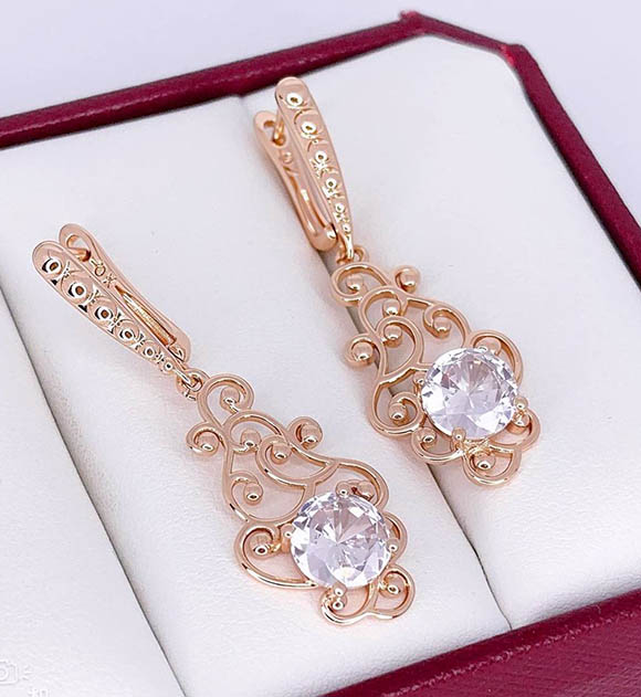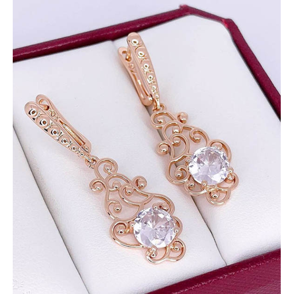 Гипоаллергенная бижутерия. Покрытый золотом 585 пробы ювелирный сплав, вставки выполнены из фианитов. Высота 4,2 см, английский замок.