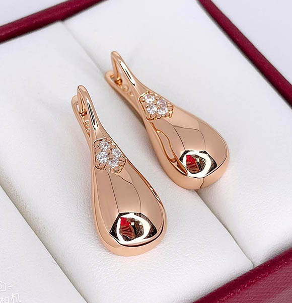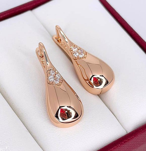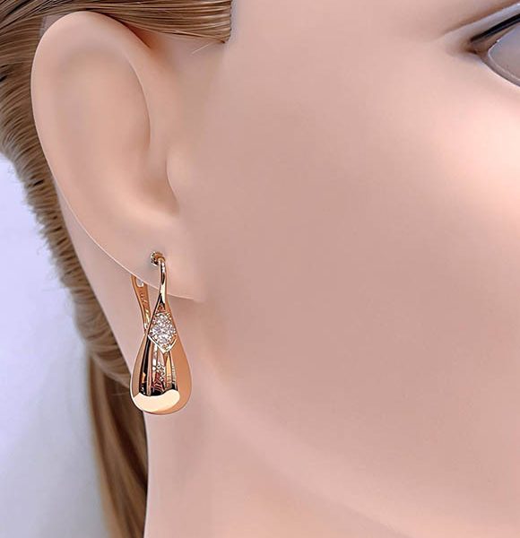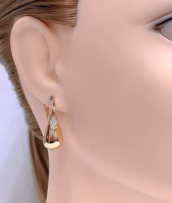 Гипоаллергенная бижутерия. Покрытый золотом 585 пробы ювелирный сплав, вставки — фианиты. Размер 2,9 см, английский замок.