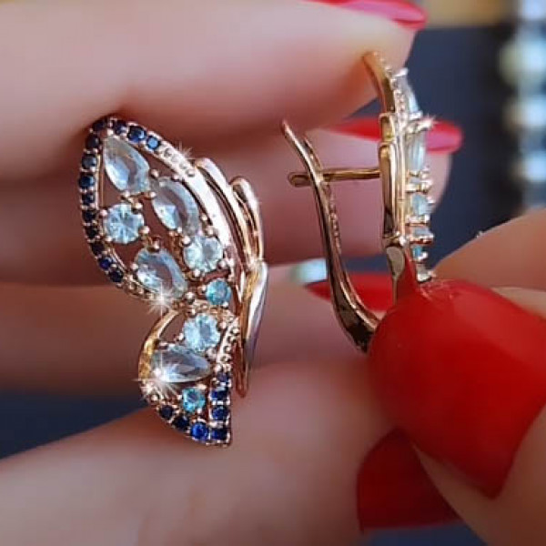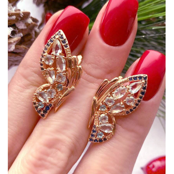 Гипоаллергенная бижутерия. Ювелирный сплав, золотое покрытие, вставки — фианиты. Размер серег 3 см, английский замок. Ниже вы можете увидеть эти серьги на видео.