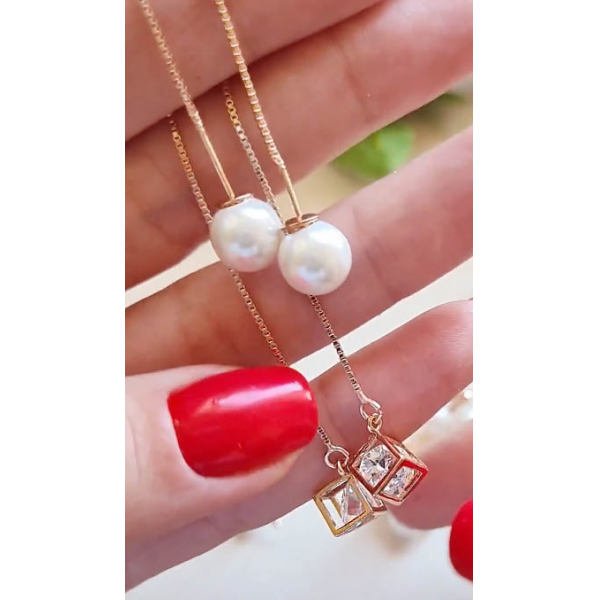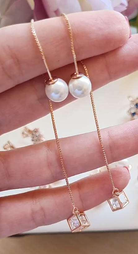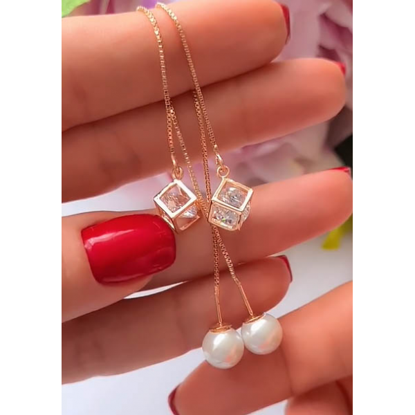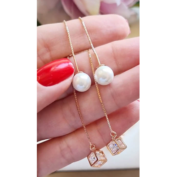Не вызывающая аллергии бижутерия. Ювелирный сплав, покрытие — золото 585 пробы, вставки — жемчуг и фианиты. Чтобы надеть серьгу, нужно снять жемчужину, а, надев серьгу, жемчужину можно вернуть на прежнее место. Осталось 2 пары.