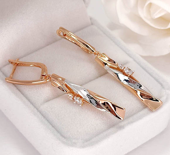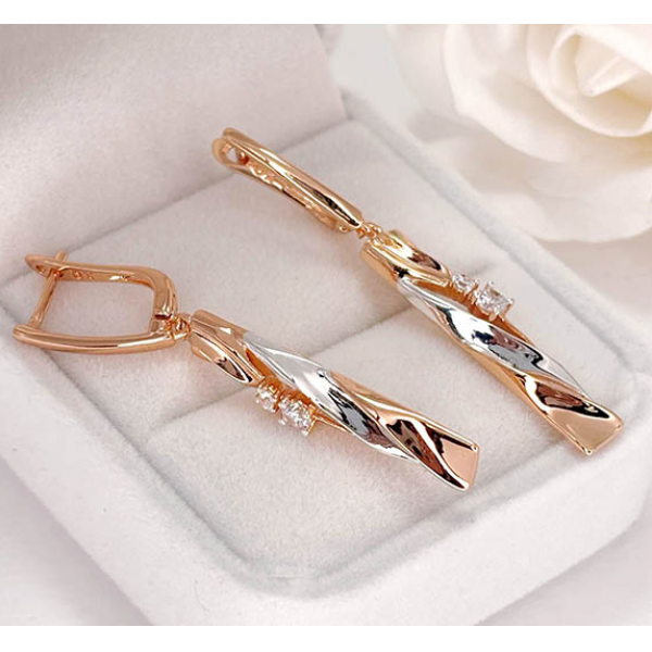 Гипоаллергенная бижутерия. Ювелирный сплав, покрытие выполнено из золота 585 пробы и родия, вставки — фианиты. Размер 4,8 см, английский замок.