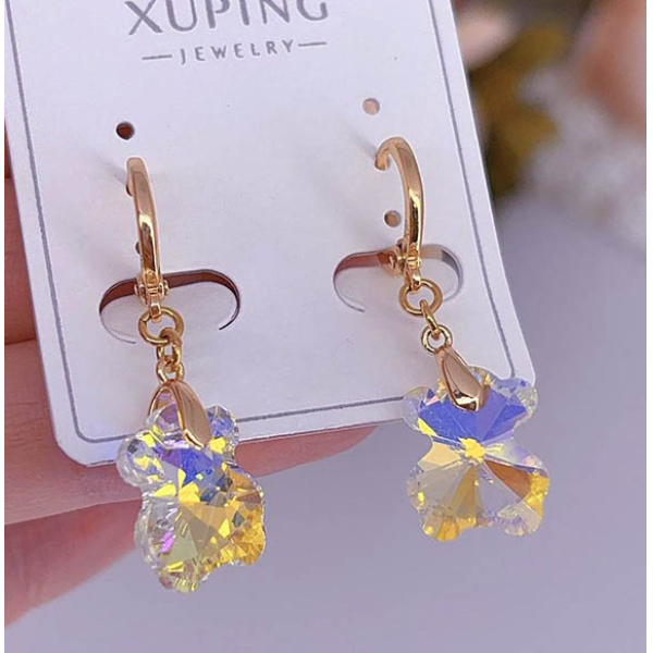 Ювелирный сплав, гипоаллергенное покрытие из золота 585 пробы, вставки — кристаллы Сваровски. Длина серег 3,5 см, замок кольцо.