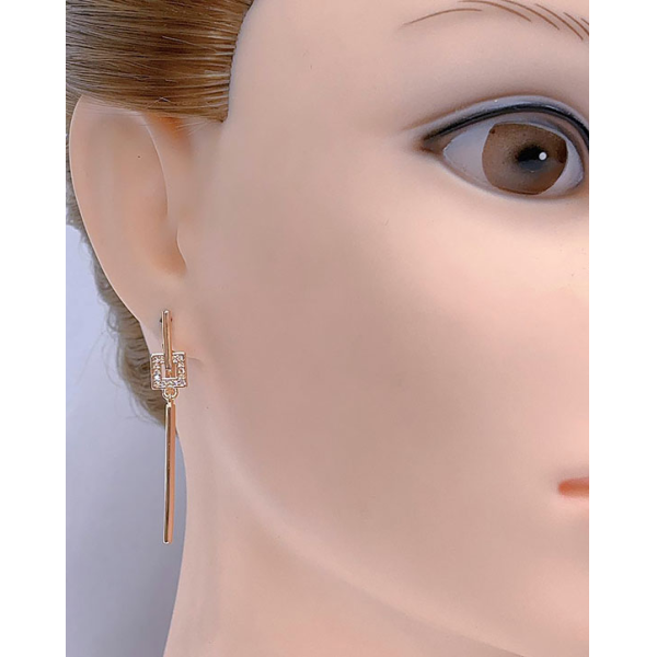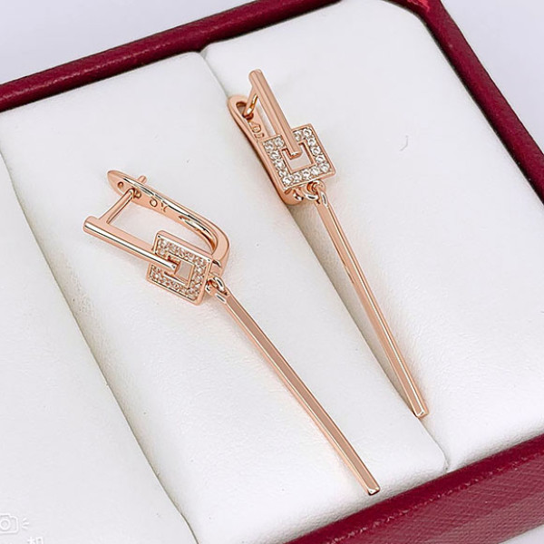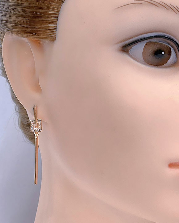 Не вызывающая аллергии бижутерия. Ювелирный сплав, покрытие — золото 585 пробы, вставки выполнены из фианитов. Длина 4,2 см, английский замок.