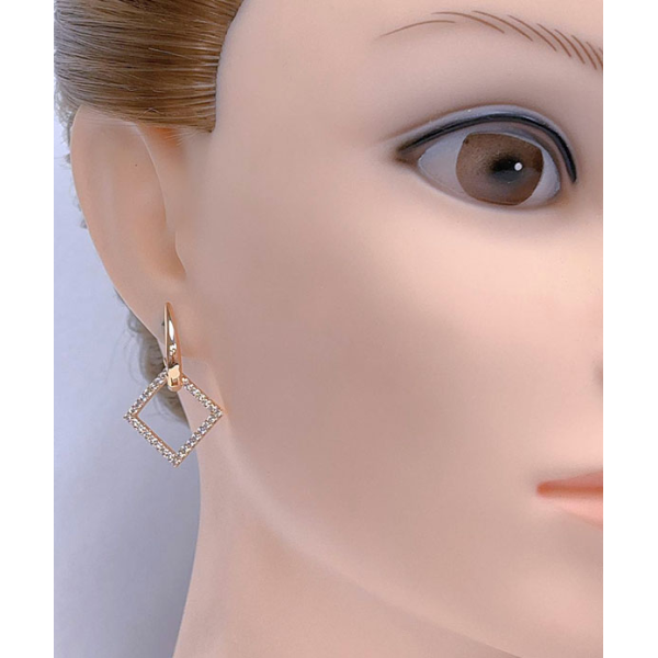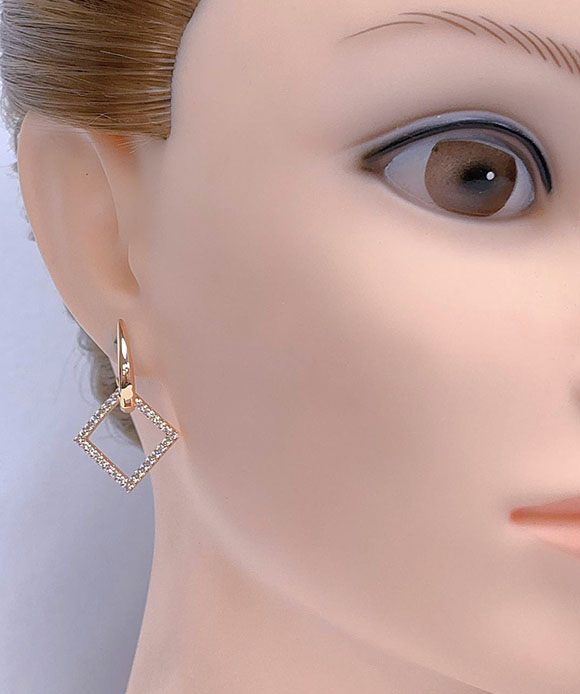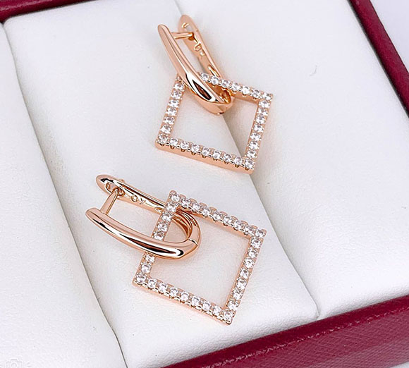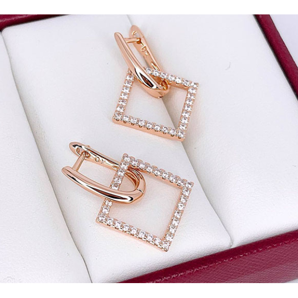 Ювелирный сплав, гипоаллергенное золотое покрытие (из золота 585 пробы), вставки — фианиты. Высота серег 3 см, английский замок.