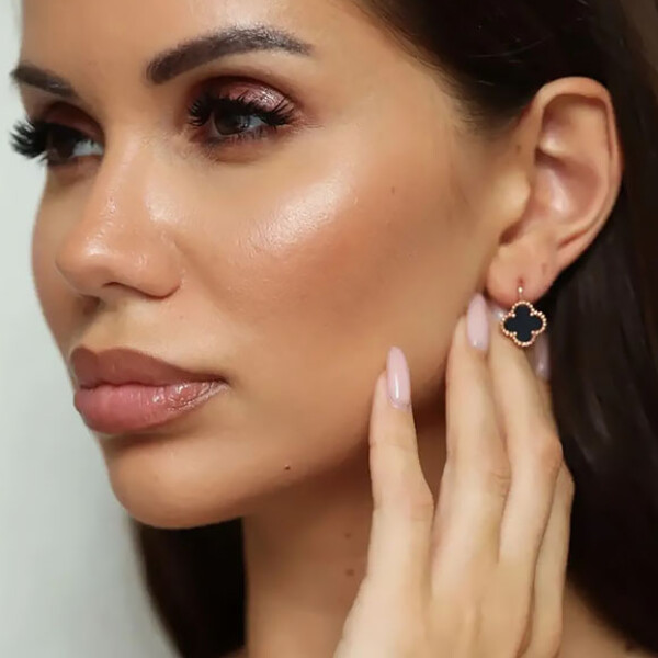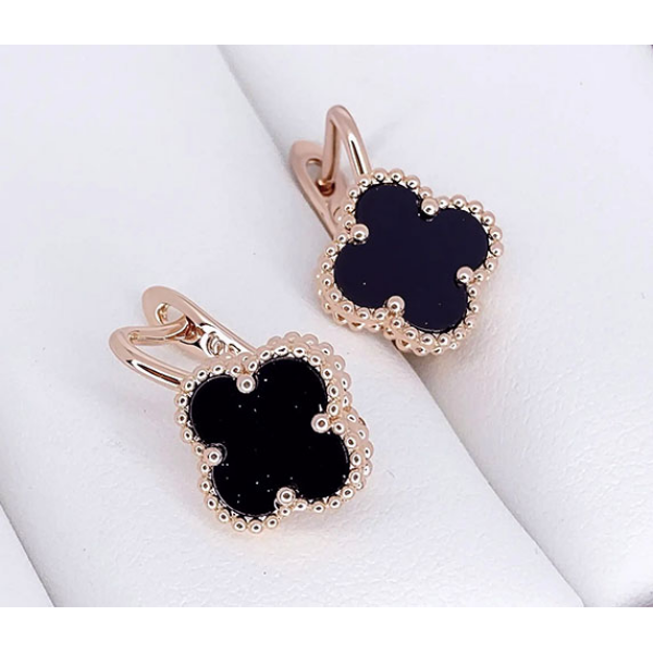Не вызывающая аллергии бижутерия. Ювелирный сплав, покрытие — золото 585 пробы, вставки выполнены из керамики. Высота серег 1,7 см, английский замок.