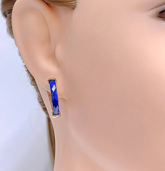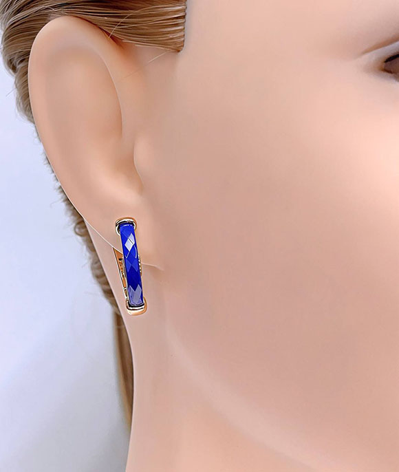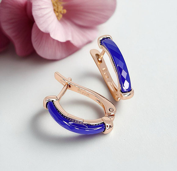 Позолоченный гипоаллергенный сплав (покрытие — из золота 585 пробы), вставки — керамика. Длина серег 2 см, английский замок.