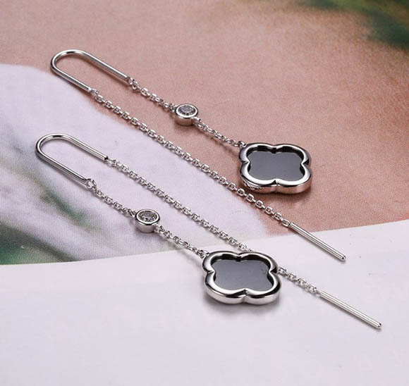 Гипоаллергенная бижутерия. Покрытый родием ювелирный сплав, вставки — керамика. Длина серег 4,5 см.