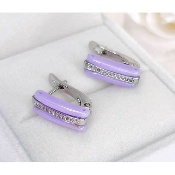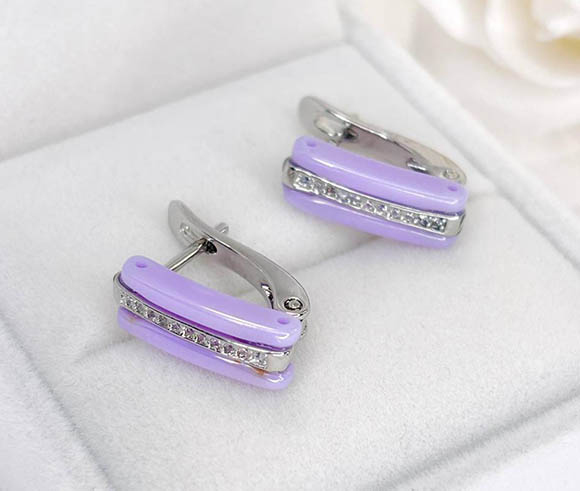 Гипоаллергенная бижутерия. Ювелирный сплав, покрытие выполнено из родия, вставки — керамика и фианиты. Высота 1,5 см, английский замок.