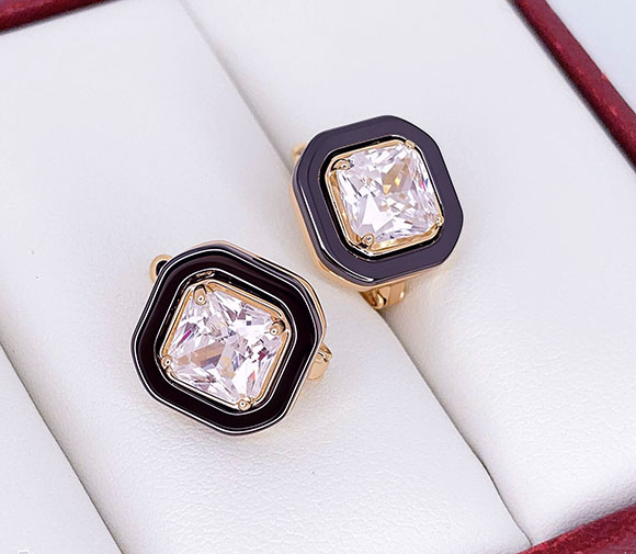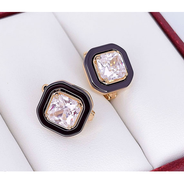 Гипоаллергенная бижутерия. Ювелирный сплав, покрытие выполнено из золота 585 пробы, вставки — керамика и фианиты. Высота 1,2 см, английский замок.