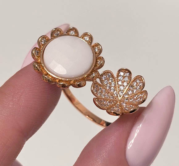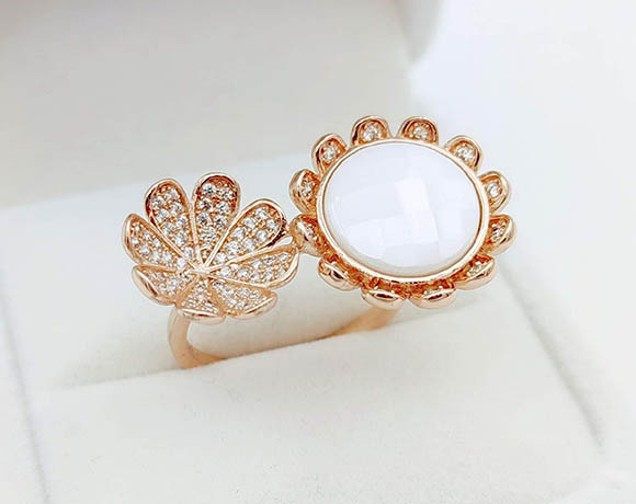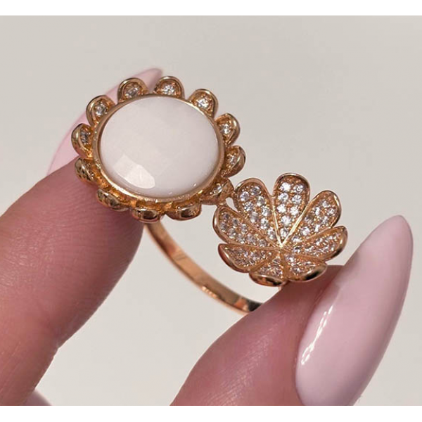 Гипоаллергенная бижутерия. Ювелирный сплав, покрытие выполнено из золота 585 пробы, вставки — керамика и фианиты. Размер: 18. Осталось 1 кольцо.