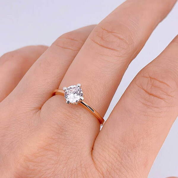 Гипоаллергенная бижутерия. Покрытый золотом 585 пробы и родием ювелирный сплав, вставка — фианит. Размеры: 17; 18; 19; 20.