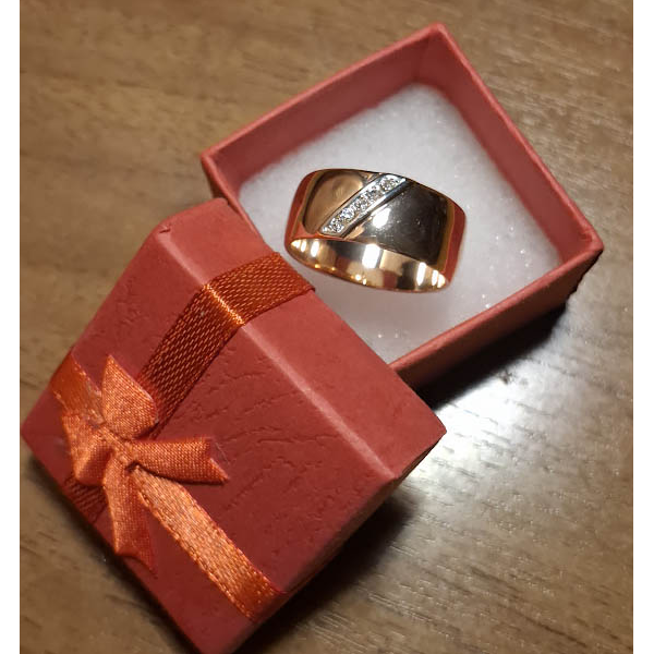 Суперское колечко. Пойдет даже как обручальное. Фианиты классные, сверкают, позолота, но кто их там отличит от настоящих)) подруги по крайней мере ничего не заметили, подумали и впрямь, что кольцо золотое. Выглядит очень дорого и натурально. Доставка сработала быстро, состояние хорошее.