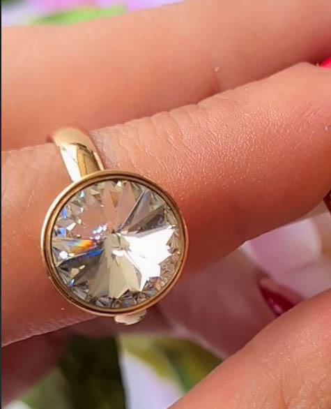 Гипоаллергенная бижутерия. Ювелирный сплав, покрытие выполнено из золота 585 пробы, вставка — кристалл Сваровски. Кольцо разъемное. Размеры: 17 — 18.