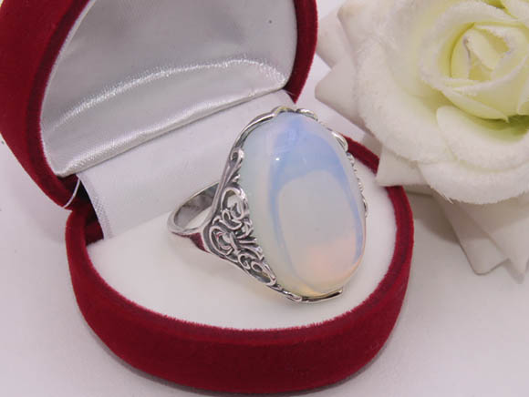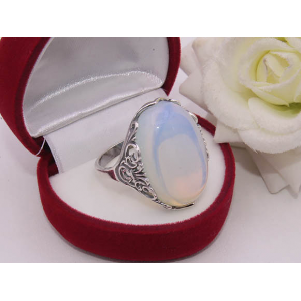Гипоаллергенная бижутерия. Ювелирный сплав, покрытие — серебро, вставка — лунный камень. Размеры: 19,5. В комплект к этому кольцу рекомендуем приобрести серьги E-2176.