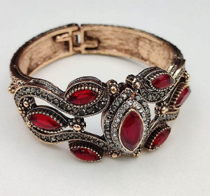 Бижутерия из коллекции «Великолепный век». Не вызывающий аллергии сплав, вставки — имитация натурального камня и стразы. Размер браслета 18 см — 20 см.