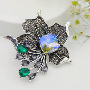 Гипоаллергенная бижутерия. Ювелирный сплав, вставки — чешское стекло. Размеры броши: длина 4,2 см, ширина 6 см.
