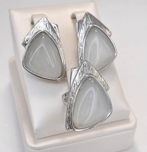 Набор бижутерии с марказитами: кулон, серьги, кольцо.