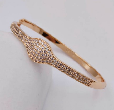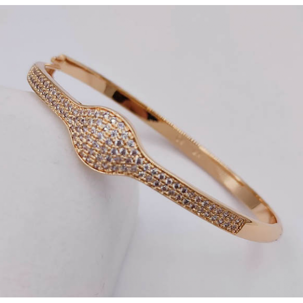 Гипоаллергенная бижутерия. Ювелирный сплав, покрытие — золото 585 пробы, вставки — фианиты. Размер 18,5 см, ширина 11 мм.