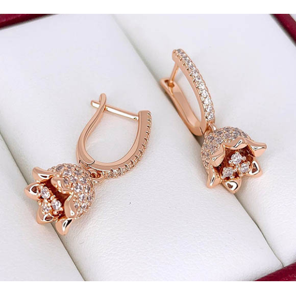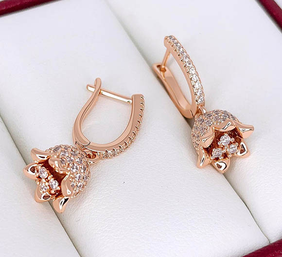 Гипоаллергенная бижутерия. Ювелирный сплав, покрытие — золото 585 пробы, вставки — фианиты. У серег английский замок.
