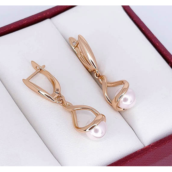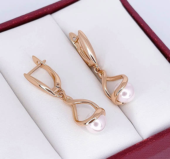 Гипоаллергенная бижутерия. Покрытый золотом 585 пробы ювелирный сплав, вставки — жемчуг. Длина 3,2 см, английский замок.