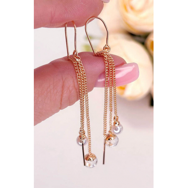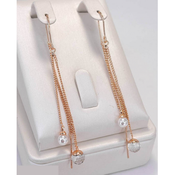 Позолоченный гипоаллергенный сплав (покрытие —золото 585 пробы), вставки — жемчуг и фианиты.