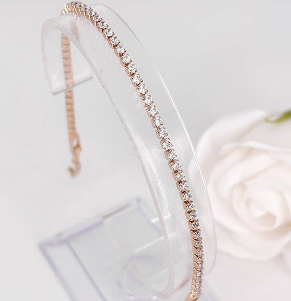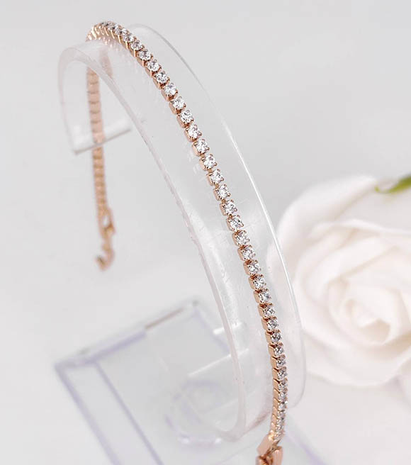 Гипоаллергенная бижутерия. Ювелирный сплав, покрытие выполнено из золота 585 пробы, вставки — фианиты. Размер 16,5 см плюс добор 2,5 см.