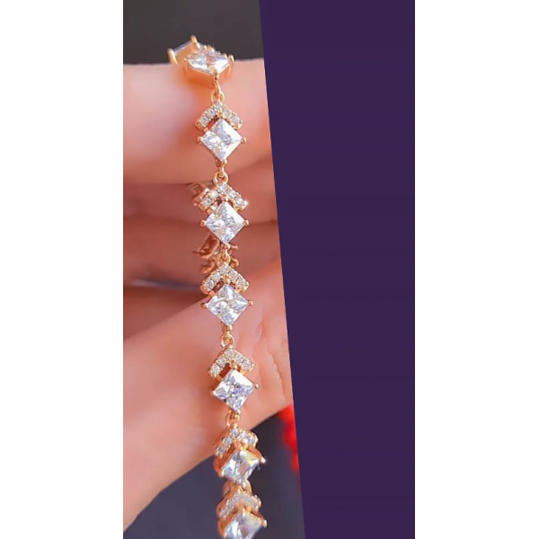 Гипоаллергенная бижутерия. Ювелирный сплав, покрытие выполнено из золота 585 пробы, вставки — фианиты. Размер браслета 18 см или 19,5 см.