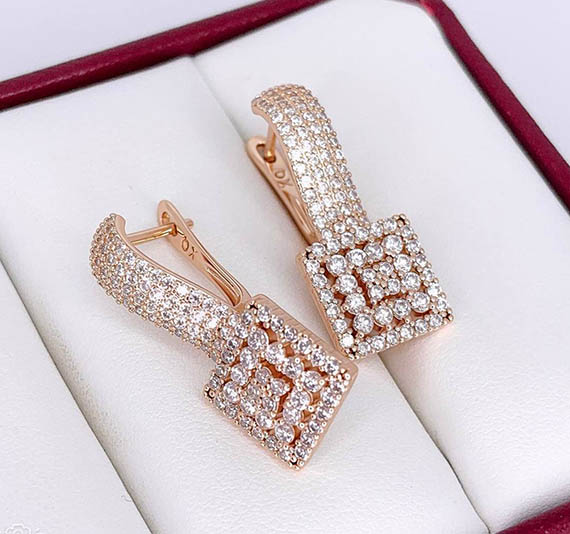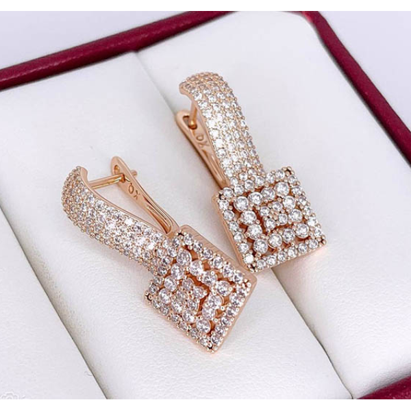 Гипоаллергенная бижутерия. Ювелирный сплав, покрытие — золото 585 пробы, вставки — фианиты. Высота 2,8 см, английский замок.